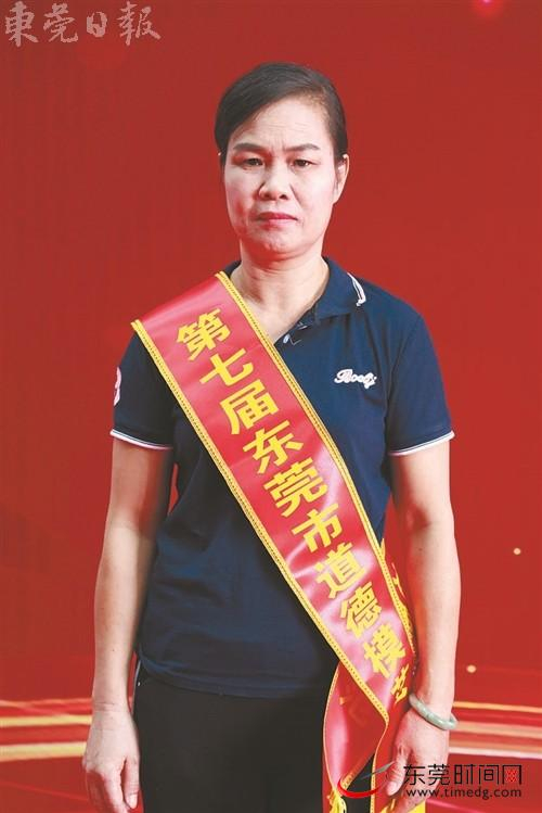 黎丽琼,女,高埗镇冼沙村村民。她丈夫于28年前因车祸致残,颈部以下瘫痪,生活完全不能自理。她不离不弃陪伴丈夫走过艰难的人生道路,喂饭、喂药、擦洗身子……28年如一日,一边独力挑起养家糊口的家庭重担,每天早起晚睡、忙里忙外;一边悉心照顾瘫痪丈夫,不离不弃,对儿子言传身教。她经常说:“做人做事要讲良心,夫妻之间、母子之间更应该讲良心,不能有困难就分开。”她用不普通的人生经历说明了相识一生、相守一生、相爱一生的家庭生活真谛,谱写了一曲感天动地的人间真情之歌,用实际行动诠释中华民族贤妻良母的传统美德。于2016年9月获评“东莞好人”。