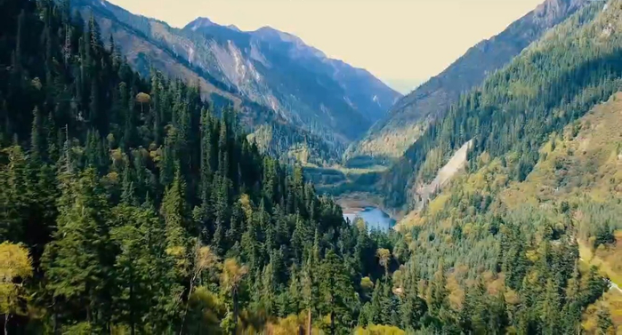 九寨沟景区五花海航拍俯瞰图。 新京报我们视频截图