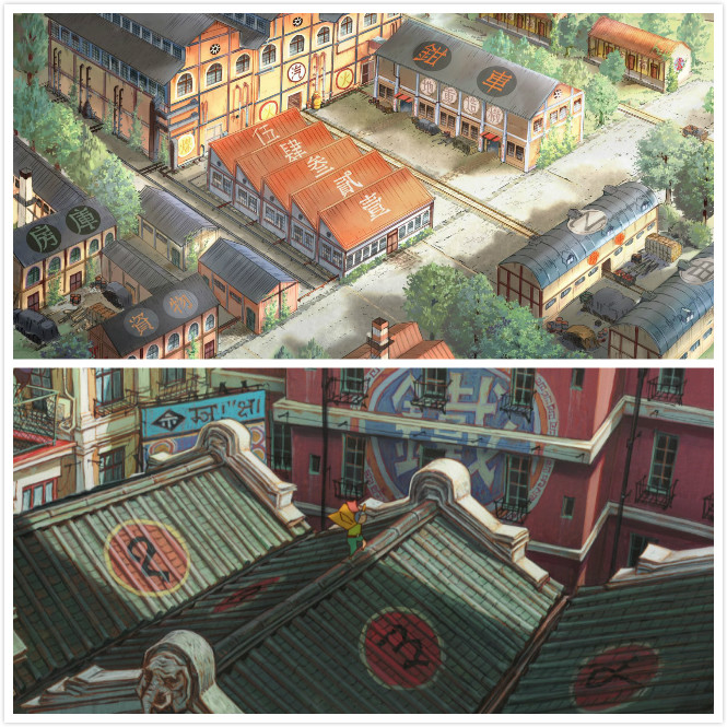 其实《江南》模仿了另一位日本动画界前辈的作品—— 木村真二的《恶童》,他是日本著名的动画美术指导。吴晓刚恰好看了他2006年参与美术指导的《恶童》,发现这部作品的某些元素特别符合导演当初的设想,“你会发现我们电影中厂区屋顶的涂装借鉴了这部电影的设计思路,”为此,导演还专门和木村真二公司的董事长表示了致谢。
