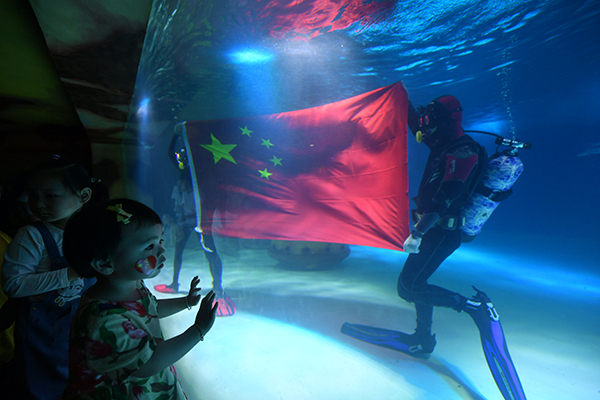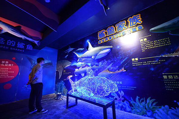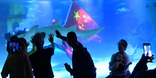 国庆节期间,市民可以到南京海底世界参观全新鲨鱼馆,也可以参加讲解员的“鲨鱼课堂”,获得官方鲨鱼贴纸。