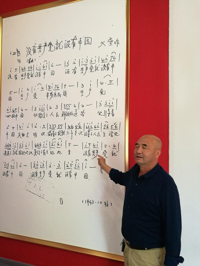 《没有共产党就没有新中国》纪念馆馆长任政瑞在介绍歌曲原稿