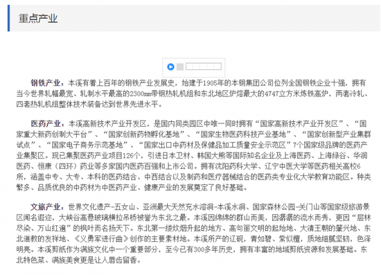 据本溪市官网介绍,本溪高新技术产业开发区,是国内同类园区中唯一同时拥有“国家高新技术产业开发区”“国家重大新药创制大平台”“国家创新药物孵化基地”“国家生物医药科技产业基地”等7个国家级品牌的医药产业集聚区。