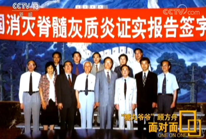 2000年7月21日,74岁的顾方舟在卫生部举行的“中国消灭脊髓灰质炎证实报告签字仪式”上庄严的签上了自己的名字,中国正式成为消灭“脊灰”的国家,这也是人类继消灭天花之后的又一项伟大成就。
