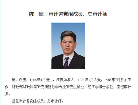 公开资料显示,陈健在地方审计系统工作多年,曾担任江苏省审计厅副厅长。