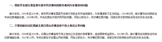 审计发现,2012年,时任辽宁省委书记王珉涉嫌在土地出让中违规操作,为他人投资房地产谋取不正当利益。2015年4月,审计署将此问题线索移送中央纪委调查。
