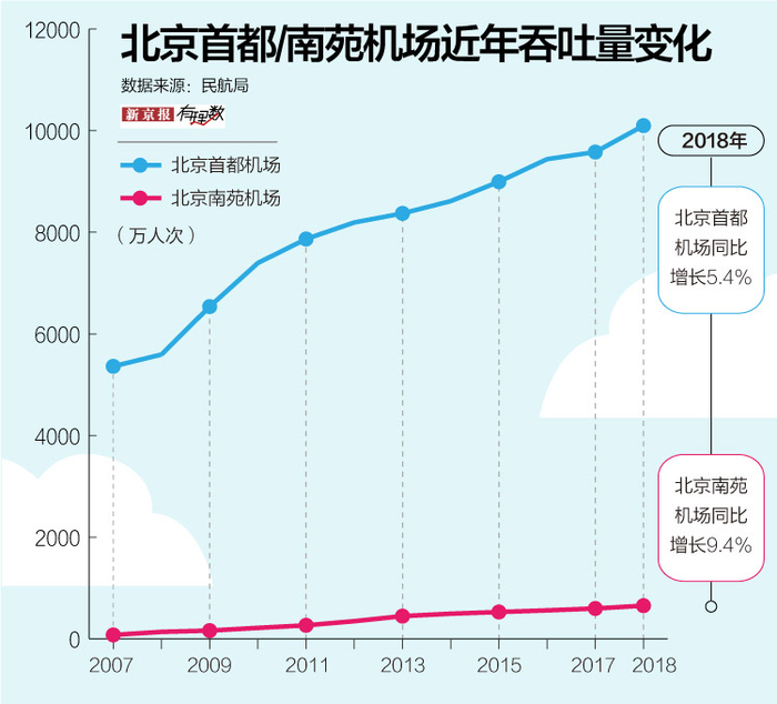 而在这之前,北京这座拥有超过2100万人口的特大城市,人们航空出行的需求主要由首都机场(加上客运量几乎可以忽略不计的南苑机场)来供应。
