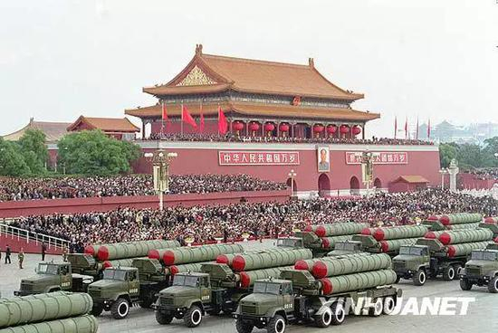 图为1999年10月1日,空军新型地空导弹方队通过天安门广场。新华社记者 白连锁 摄