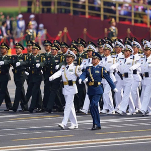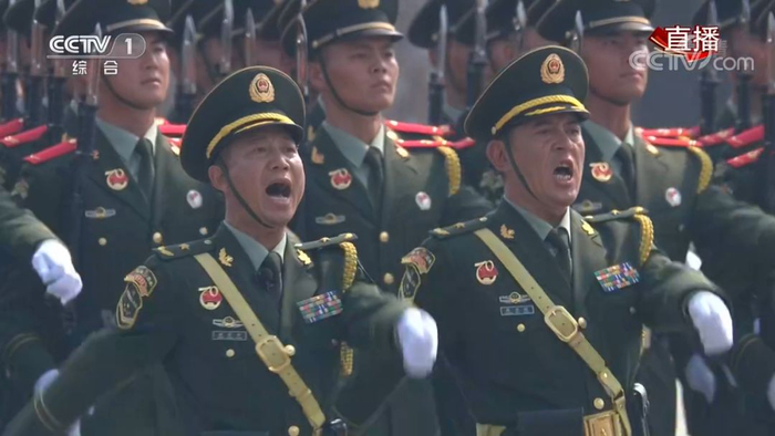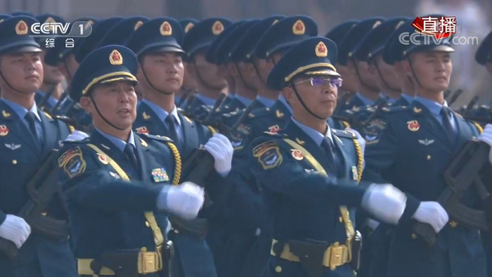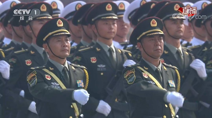 战略支援部队方队首次出现在国庆阅兵中,领队是王学武少将、康怀海少将。