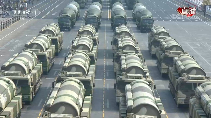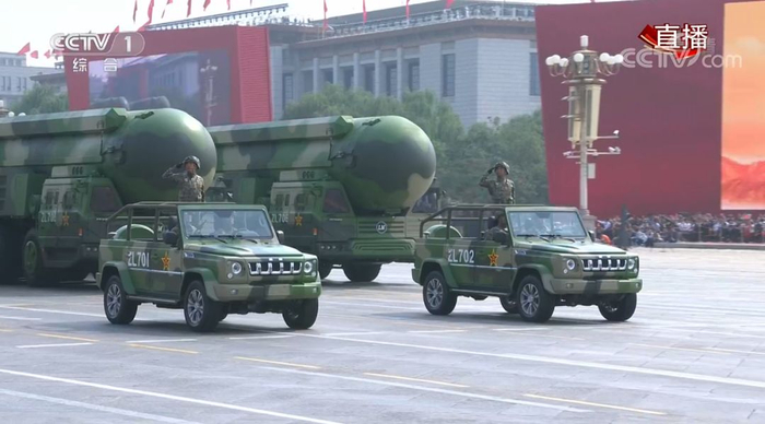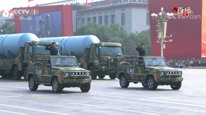 东风-31甲改核导弹方队,领队是袁德华少将、何骏少将。