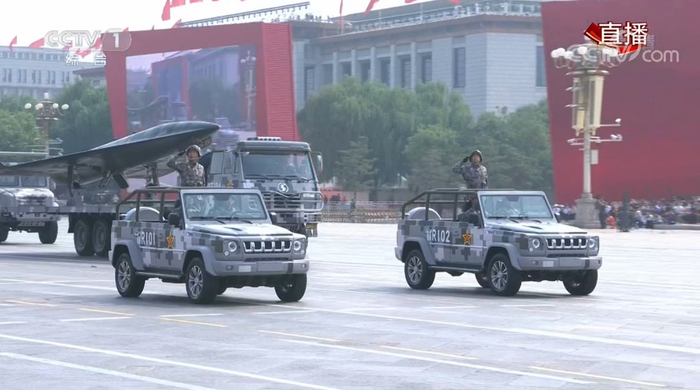 无人作战第1方队,领队是姜鹏少将、顾庆友少将。