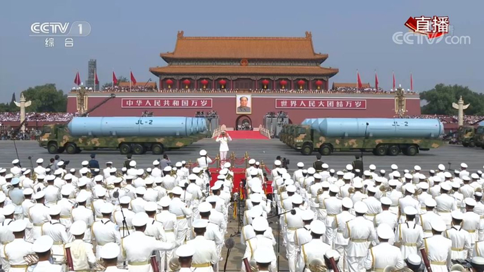 巨浪-2导弹方队开过来了,领队是吴栋柱少将、柳恩涛少将。“巨浪”奔腾,威震海天!