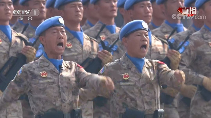 维和部队方队,领队是徐有泽少将、马宝川少将。