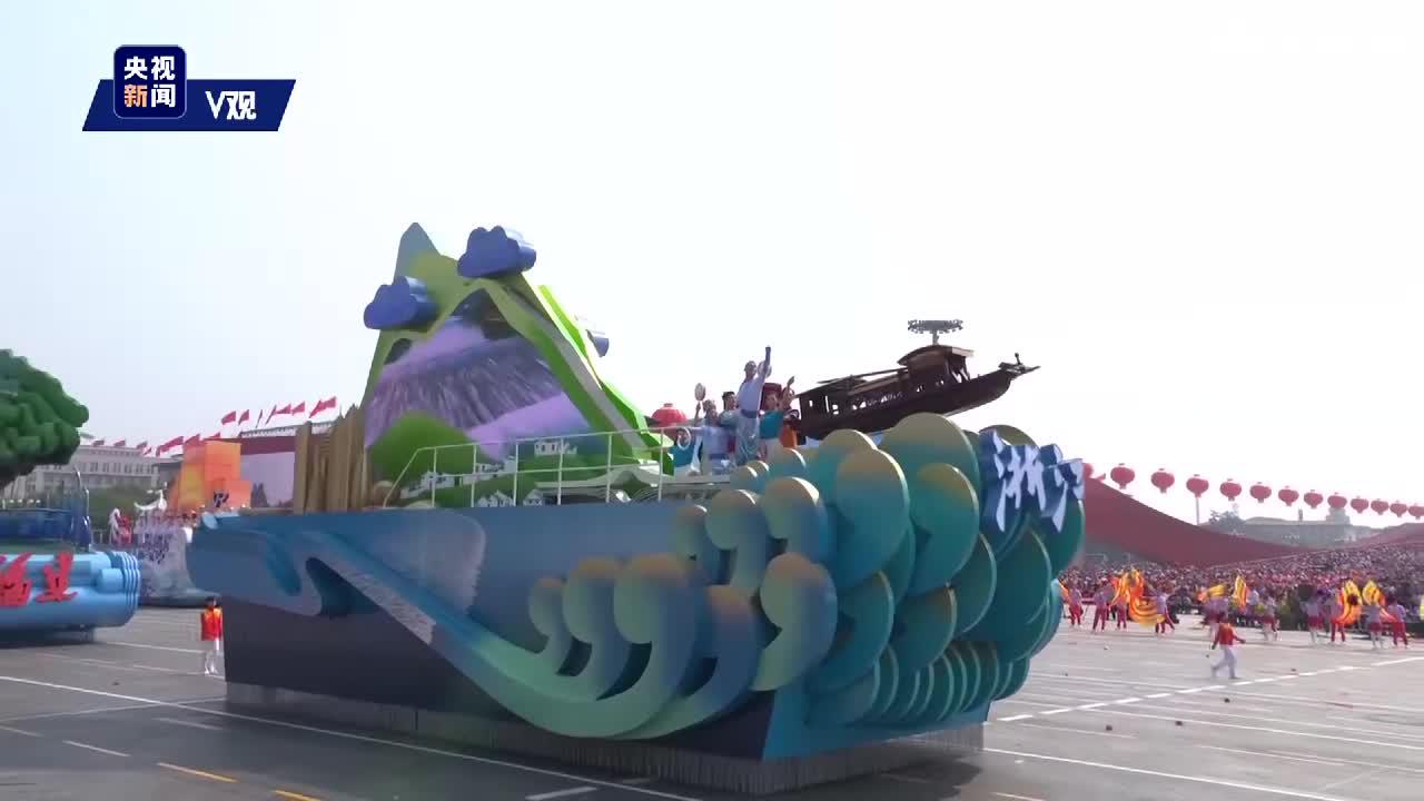参加游行的群众涵盖了各族各界、各行各业,其中包括快递小哥、广场舞大妈等群体代表,游行方阵融入了具有鲜明时代特色的音乐编配、舞蹈编排、道具设计以及雕塑创作等元素。通过人与车的组合、方阵和广场的配合、视觉和听觉的融合,生动串联起一幕幕小场景、小故事,汇聚成历史长河的大画卷。