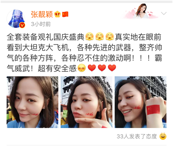 众明星艺人迎国庆 发微博“祝福祖国母亲”