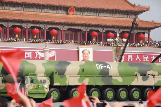 最惊艳的莫过于首次亮相的“快递小哥”东风-41核导弹,彰显了我国最先进最具有威慑力大国长剑的重要地位。