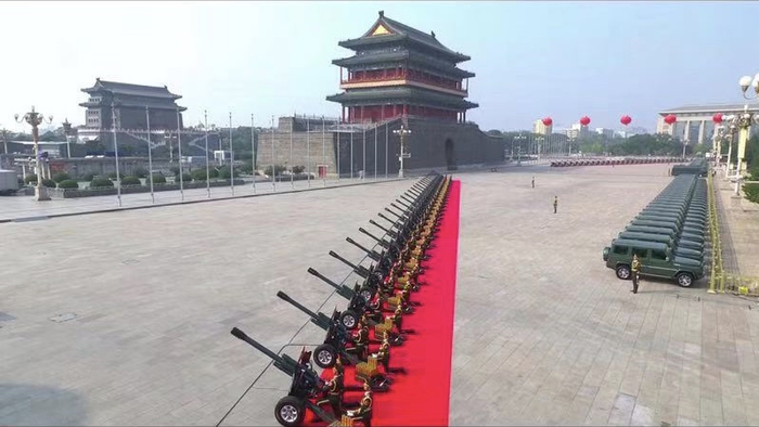 70年庆典仪式开始时,56门礼炮,70响轰鸣,述说56个民族70载的拼搏。北汽越野车BJ80担任礼炮牵引车,列队在正阳门下。此后的阅兵分列式中, BJ80担任方队引领车,上面乘载着共和国将军们。
