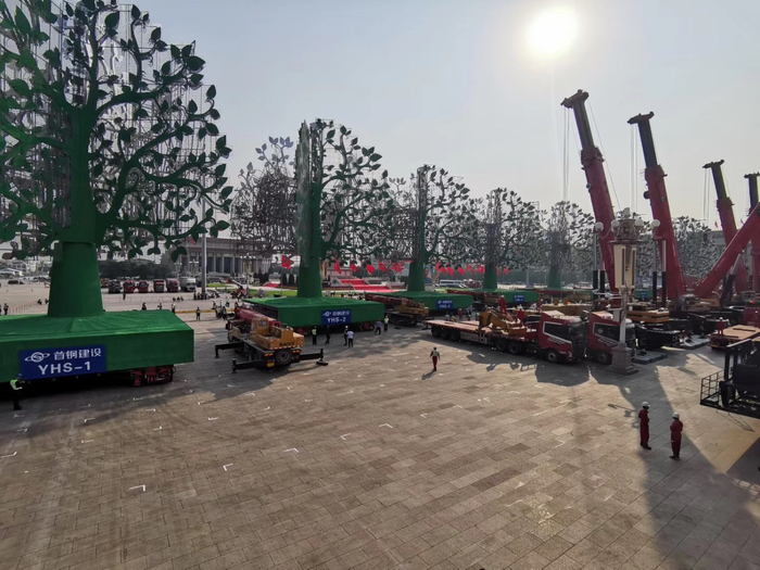 徐建民说,昨天下午的天安门广场上,电力系统、维护运营等1200人同时参与7棵树的搭建,吊车、叉车、高空作业车等有条不紊地工作。