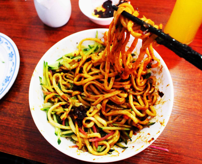 方砖厂69号炸酱面最有特色的地方在于面里的炸酱。炸酱由老板宋老爷子亲自把关。他告诉京蜜,“炸二十分钟和炸一个半小时的酱的味道是不一样的,炸酱时间太短味道会欠些火候,炸不出正宗的老北京味道。”所以他们家用的“炸酱”最少也要炸一个半小时。听到京蜜对方砖厂69号的介绍,想尝尝正宗北京炸酱面的游客朋友心动了没有?