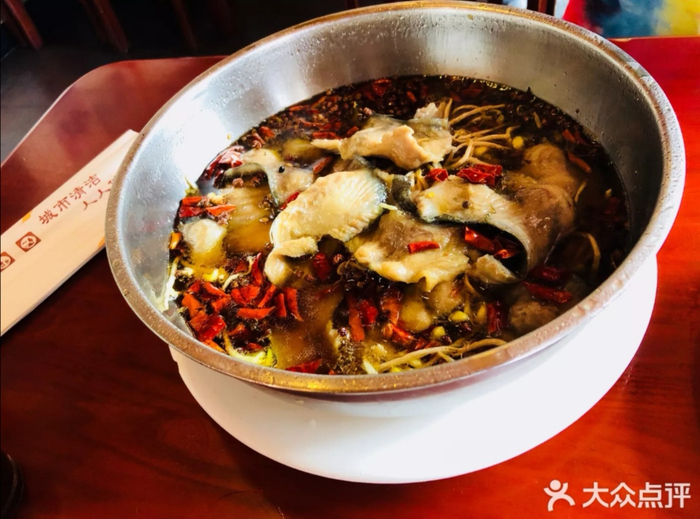 在景秀餐厅观赏完这满墙的明星合影后,就可以尽情享受这里的“家常味道”了。“碎溜鸡”、“软香平菇”和“水煮鱼”都值得一试,尤其是“水煮鱼”,实惠又美味。水煮鱼小份68元,大份88元,都是用小盆来装,而且选用的是基本没刺的新鲜黑鱼,鱼肉肉质肥美,非常入味,性价比很高。