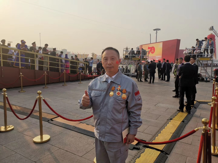 新京报讯(记者 魏帅)在庆祝中华人民共和国成立70周年大会上,东风商用车一线工人王建清受邀登上天安门观礼台观看国庆阅兵盛典。