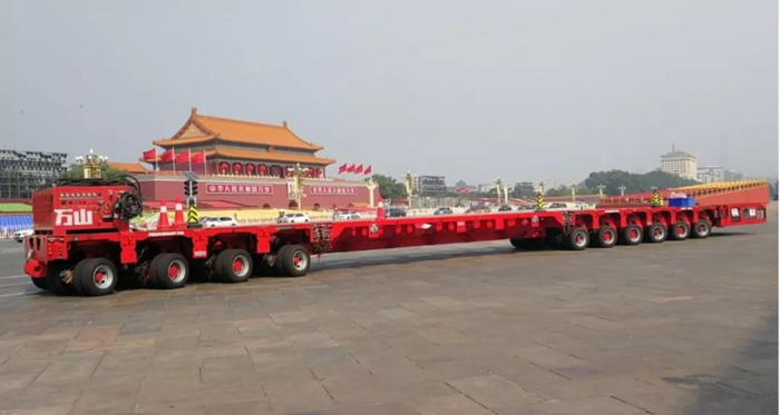 为了此次国庆70周年活动,航天三江集团提供了20台重型平板运输车和20台自行模块运输车,总计用了3120条轮胎!