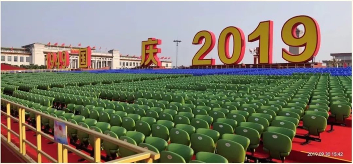 9月30日上午,天安门广场上还空旷如旧,而在10月1日清晨,庆祝中华人民共和国成立70周年大会开始前,一个东西向长超170米、南北向纵深超130米、最高处达6.5米、需要迈58级台阶才能登顶的巨型观礼台,就赫然出现在广场上!