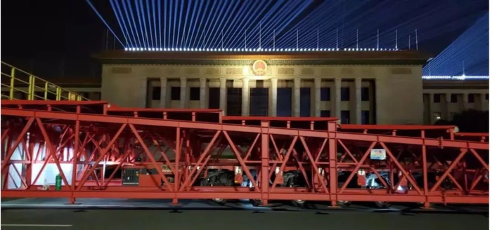 而在10月1日20余万军民参加的盛大阅兵仪式和群众游行结束后,广场上观礼台中2.7万多个座椅被迅速移走,观礼台中间30米的甬道填满了,观礼台很快又变身成为晚上联欢活动的华丽舞台。