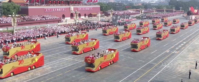在本次庆典中,21辆北汽福田欧辉客车担任礼宾车,组成“致敬方队”,向老一辈领袖、英雄和先锋致敬。此外,2310辆欧辉则担任外围保障用车,为现场10万人保驾护航。