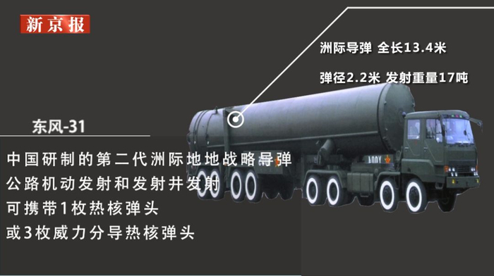 2019年10月1日公开亮相,我国战略核力量的重要支撑,可携带6到10枚分导式弹头,命中精度100米。