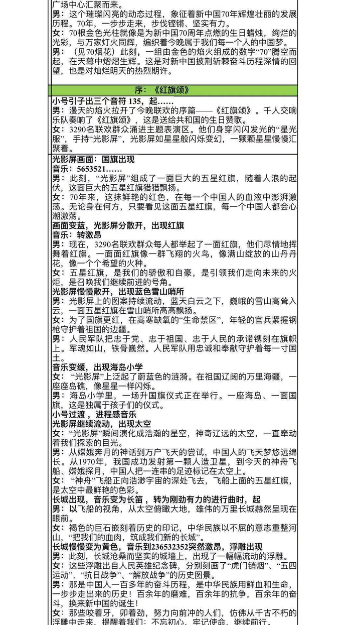 方队“米秒不差”,现场解说也精准卡点。部分环节为了能及时调整时长适应当天的实际情况,不同时长版本的4份解说词预案就放在手边。特意用红、粉、蓝、绿不同颜色的纸打印,保证一旦启用,导演能最快速、准确地告知解说。不仅如此,贺红梅还介绍,和以往现场解说不同,这一次,特别依据现场声音环境重新分配了男女声解说的顺序和内容。