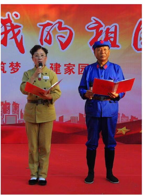 活动现场,演出以党员、志愿者诗朗诵《共庆共和国70周年》开场,随后老人们身穿演出军装,手里拿着国旗,在舞台上演唱了《英雄赞歌》《我和我的祖国》等歌曲,一个个精彩的表演把活动推向了高潮,台下的观众也挥舞着国旗连声叫好。