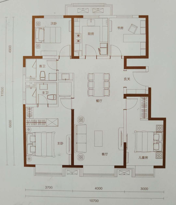 户型:四居面宽进深比接近1:1,小三居次卧局促