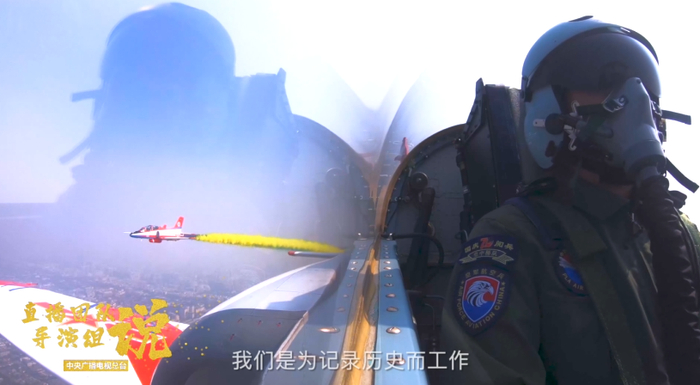 F系统团队视角可以说是最贴近我们受阅官兵的这么一支队伍。实际上我们也完成了中国电视史上的一次第一——我们在受阅的战斗机上面,加装了机外的小型机位。