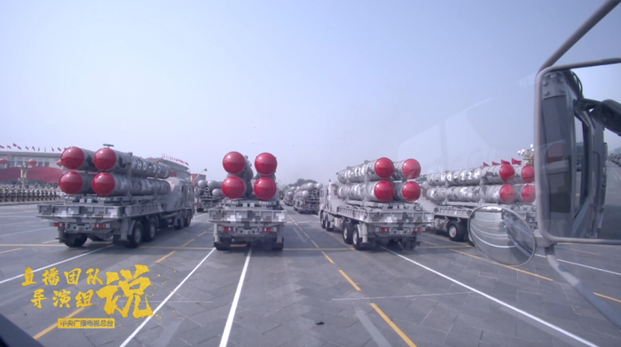 因为只有地空导弹的方队里,有两排导弹弹筒尾口的涂装是红色的,一个车上有四个,一排四个车就有16个红色的圆点。我想在十一这一天,那样的气氛,在庄重中也带有一种活泼、鲜艳的色彩。
