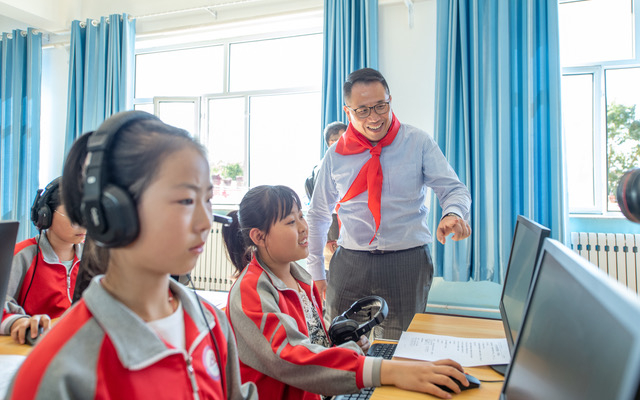 内蒙古乌兰察布市察右后旗白音察干第二小学学生在“萤火虫乐园”使用电脑