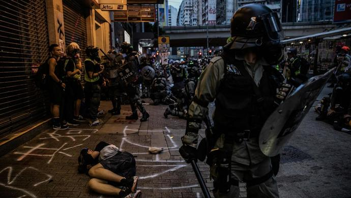 这就有了第二个问题。冲突发酵了4个多月,香港的警察权遭到了政治、舆论乃至司法环境的严重限缩。就拿舆论环境来说,香港警队面对的是一个并不太友好的本地舆论场与国际舆论场。如果打开一些本地网站或者西方媒体网站,选用的照片多为警方武力执法照片,刻意回避了黑衣人的暴力镜头。