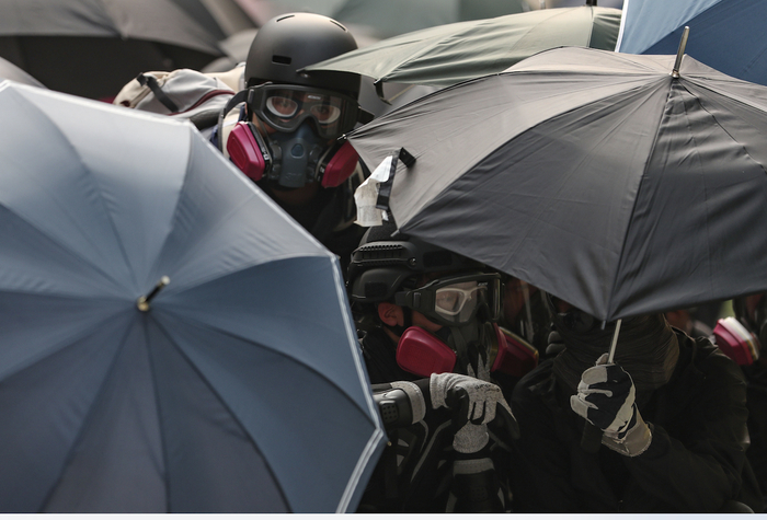 更有甚者,几次亲眼看见,一众蒙面黑衣人躲在角落,雨伞挡在外面。黑衣服的人进去,各色衣服的人出来,转眼又成了一批奉公守法的好市民了。如果警方再向这些人执法,又成了警队无差别攻击市民的“罪证”。出现了这样的流言,辟谣难度与成本非常大。光“8·31”当天港铁太子站没死人一事,警方就向媒体澄清到现在。