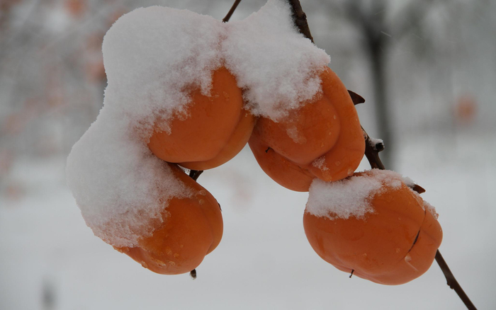 春天,柿子树长出圆乎乎的柿子叶,开花的时候,也不像苹果花、梨花那样开得热闹,待到结果,也远没有桃子、梨受人关注。直到天气转凉,花谢叶黄,寒露过后,其他果树都剩下干秃秃的枝干,再一看,红了皮的柿子,缀满枝头,如果是霜降之后,所有的柿子都褪去涩味,成为秋冬美食。