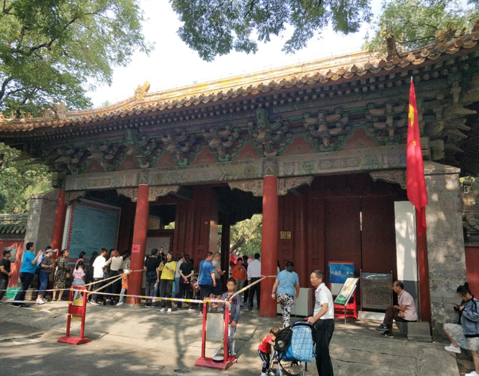 10月2日上午,游客在北京孔庙门口排队买票。 新京报记者 王洪春 摄
