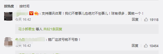 如今一切都变成未知。腾讯体育的火速表态也很快引来八方点赞,网友纷纷留言表示“支持腾讯体育,球有很多,国就一个”、“腾讯好样的,力挺腾讯”。