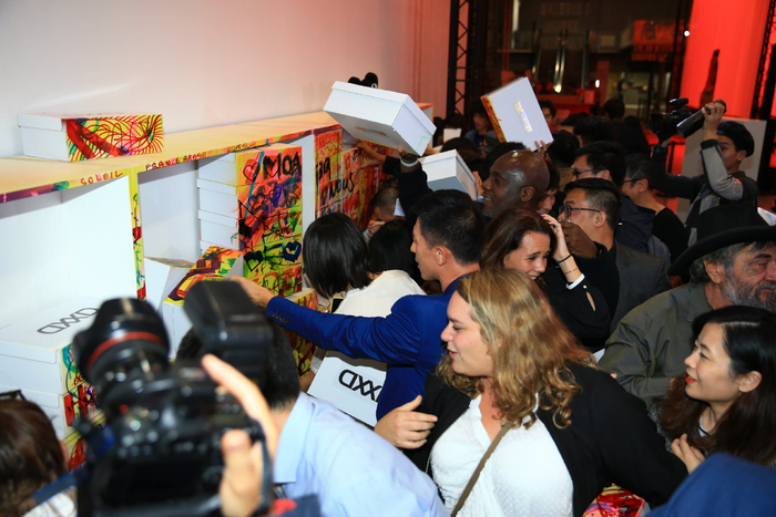 除了被国庆阅兵群众方阵体验过的“无界小白鞋”值得拥有,飞跃的新品也在国庆期间引起了众多粉丝的关注。“国潮出海”是天猫携手Bonjour Brand举办的“Bonjour Tmall Event”活动,30多个中国品牌和30多位法国设计师合作设计了150多款中法共创新品,集体亮相法国巴黎蓬皮杜艺术中心。其中,国牌飞跃和CHANEL的设计师Eric Bongiovanni的合作备受关注。Eric Bongiovanni依据老干妈、云南白药、天猫、英雄、90分、维他、洽洽、溜溜梅、优酸乳九大品牌的特征,将字母涂鸦和撞色等当下的主流风格与飞跃的经典鞋款相结合,创造出熟悉又新鲜的飞跃帆布鞋。在蓬皮杜艺术中心的发售现场,当地人对这九款跨界飞跃表现出极大的热情。