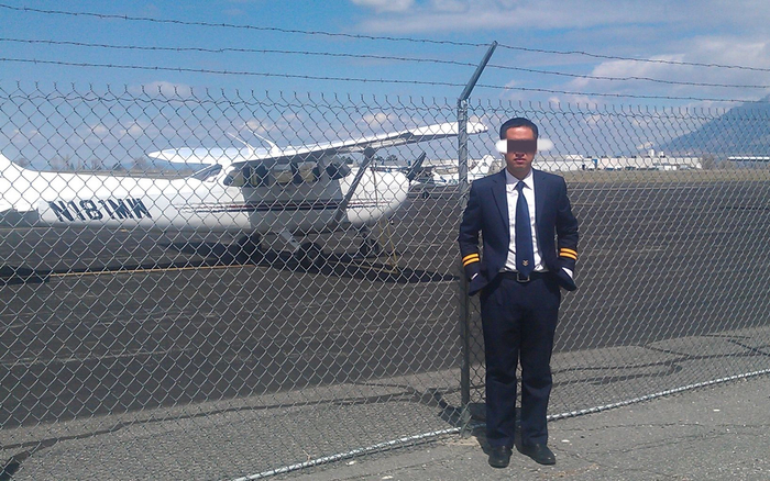 2013年4月12日,高磊在美国奠基石航空学校培训期间拍照。受访者供图