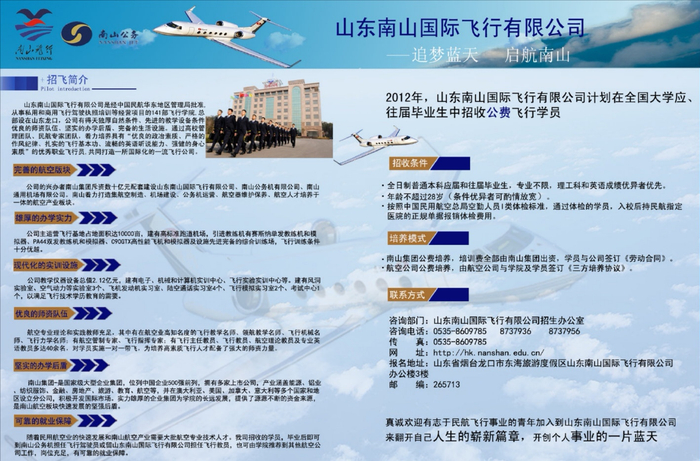2012年南山公司招飞简介显示,公费培养、签订劳动合同。受访者供图