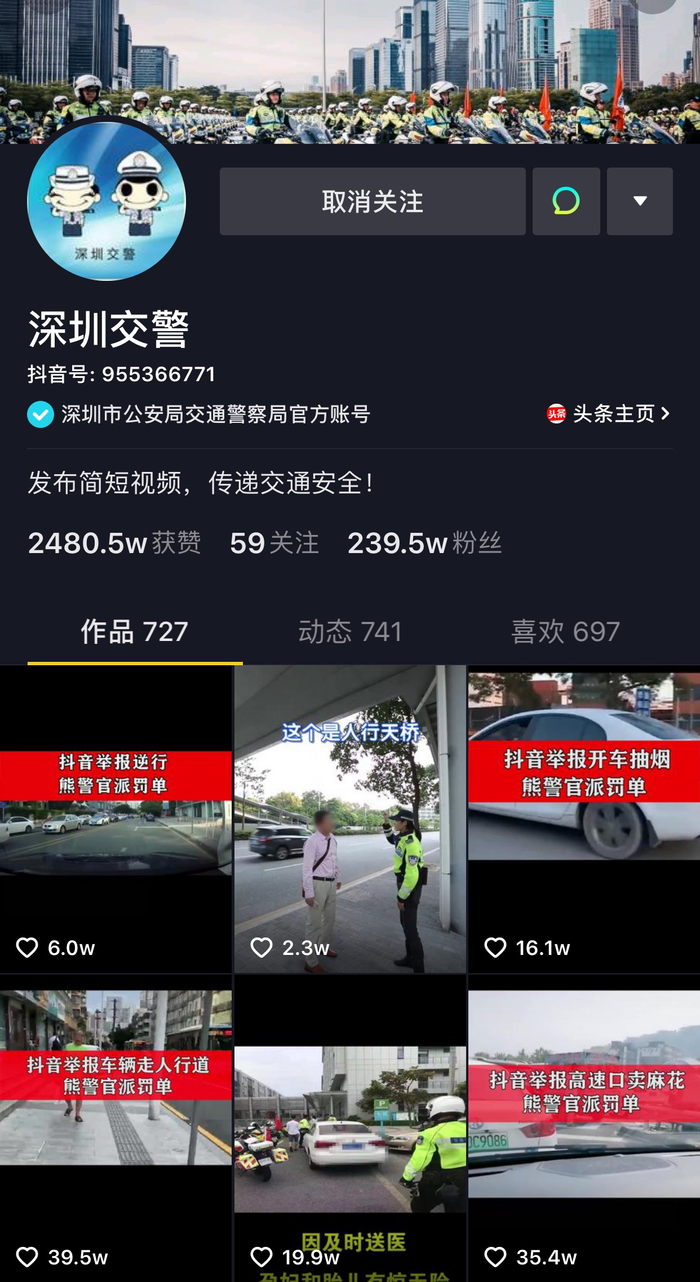 深圳交警短视频平台执法线上开罚单,出镜警官成网红