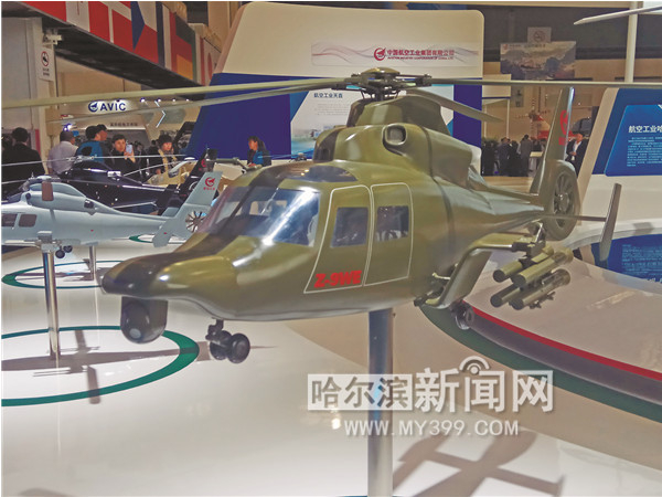 在室内展区,哈飞研制的AC312E、AC352、直19E等直升机模型以众星捧月式展示,同时以展板的方式介绍了公司科研生产实力和完善的服务保障体系。