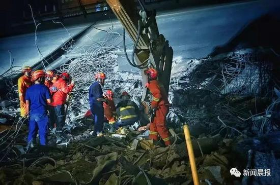 救援现场灯火通明,能够听到挖掘机和各类工程机械的轰鸣声,距离现场几百米的312国道成为了市民的眺望点。
