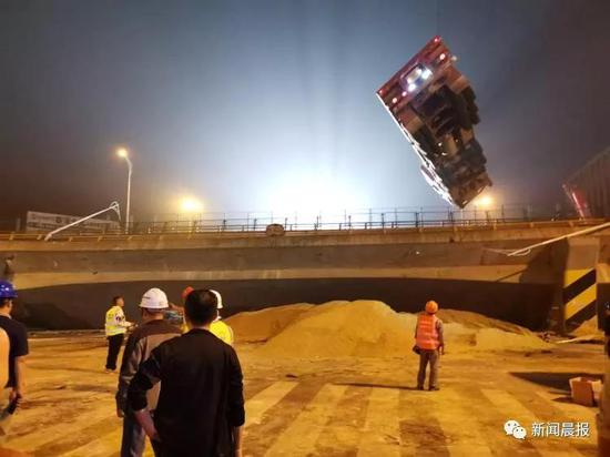 随后,无锡交通广播台播报消息:312国道上海方向位于锡港路上方的高架桥发生侧翻。