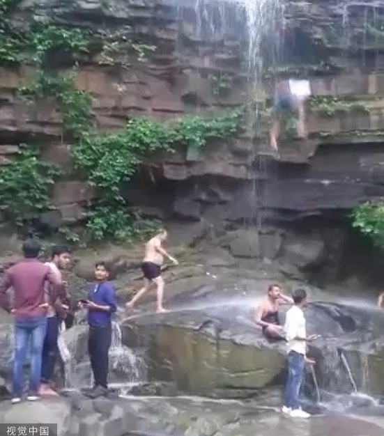 印度男子自拍时跌落瀑布。图/视觉中国