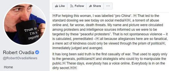 目前,在Robert Ovadia这篇“脸谱网”贴文的下面,不少留言者都向他表达了敬意,感谢他对于香港真实情况的报道,并提醒他多注意人身安全。