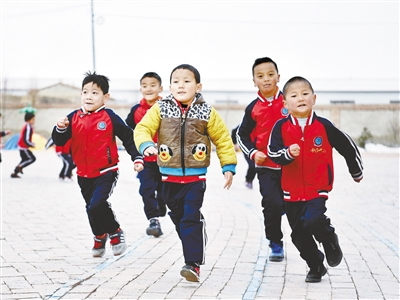 海南藏族自治州兴海县城南幼儿园的孩子们在玩耍(2019年3月14日摄)。新华社记者张龙摄